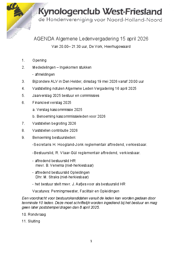 Algemene Ledenvergadering Heerhugowaard, de Vork 4, 1704 BX |